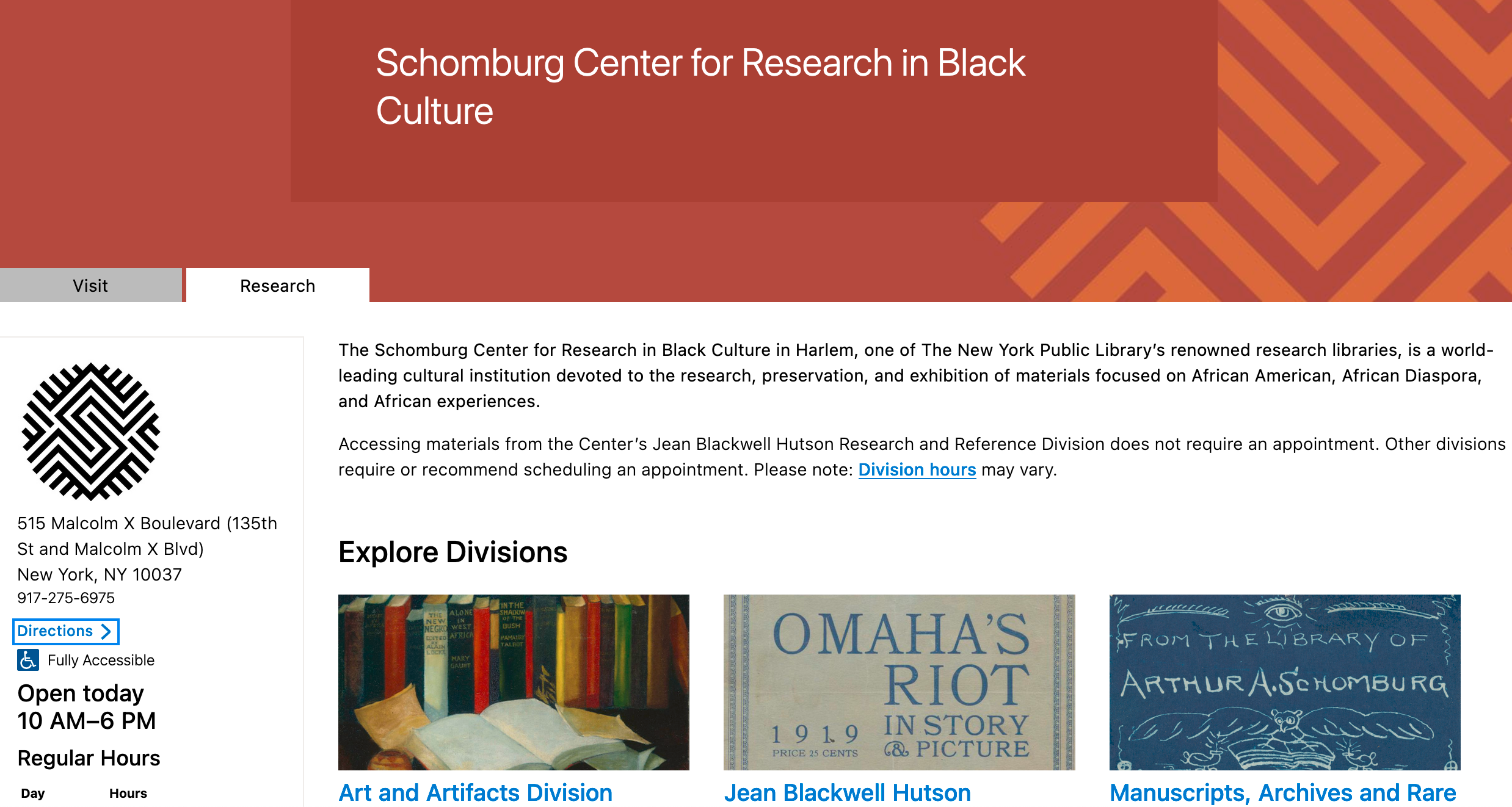New York Public Library, Schomburg Center for Research in Black Culture, Harlem, New York